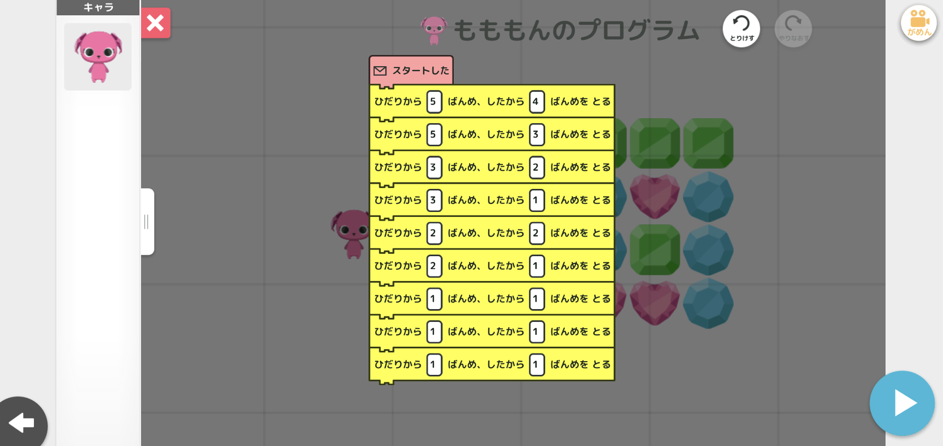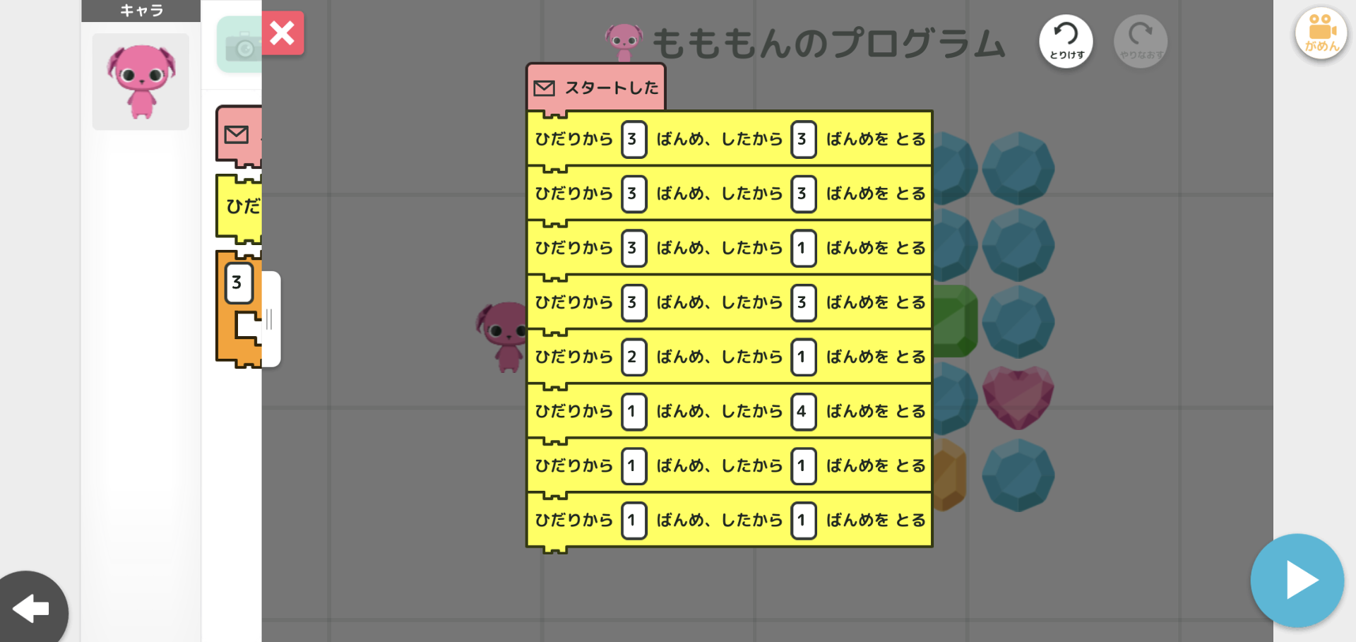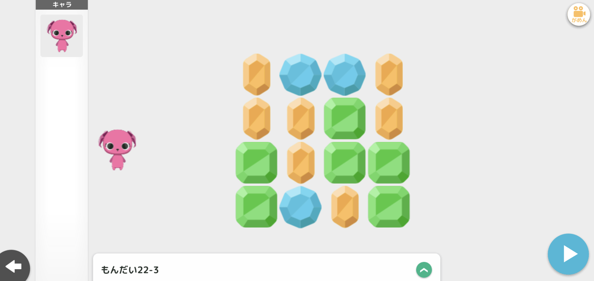 ヒントもないしとにかく解くのが難しいだけでプログラム的には同じ専用ブロックばかり使うだけで"プログラミング"ゼミのパズルとしては正直微妙