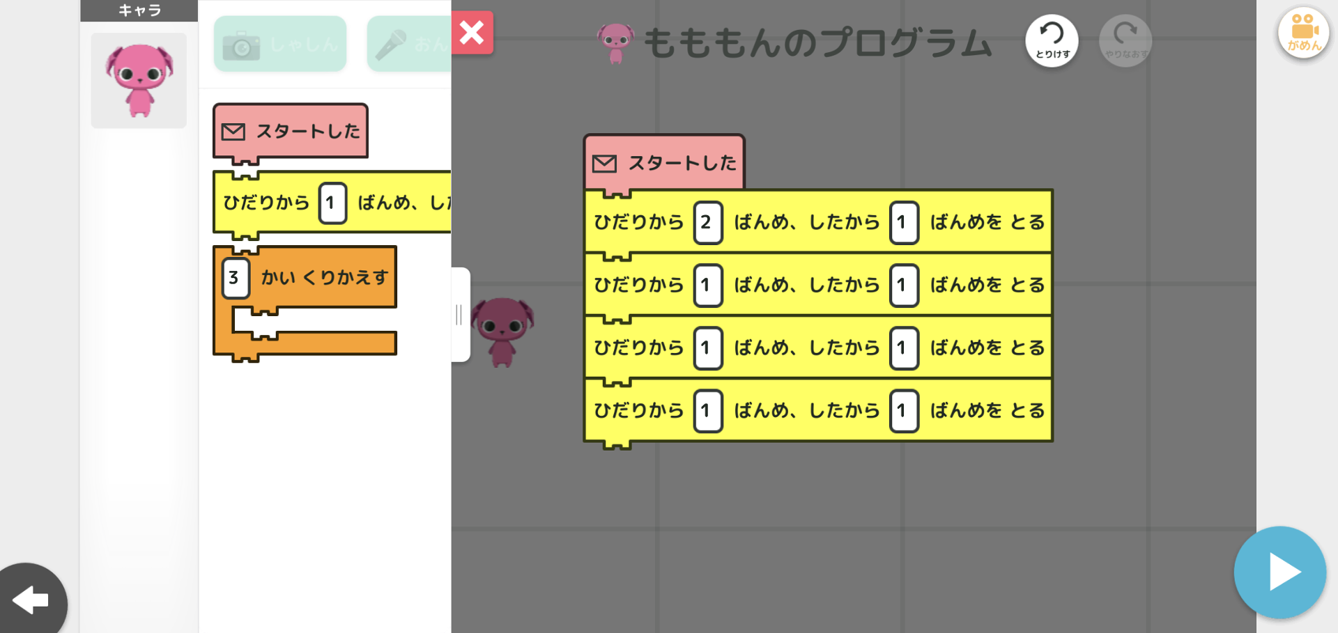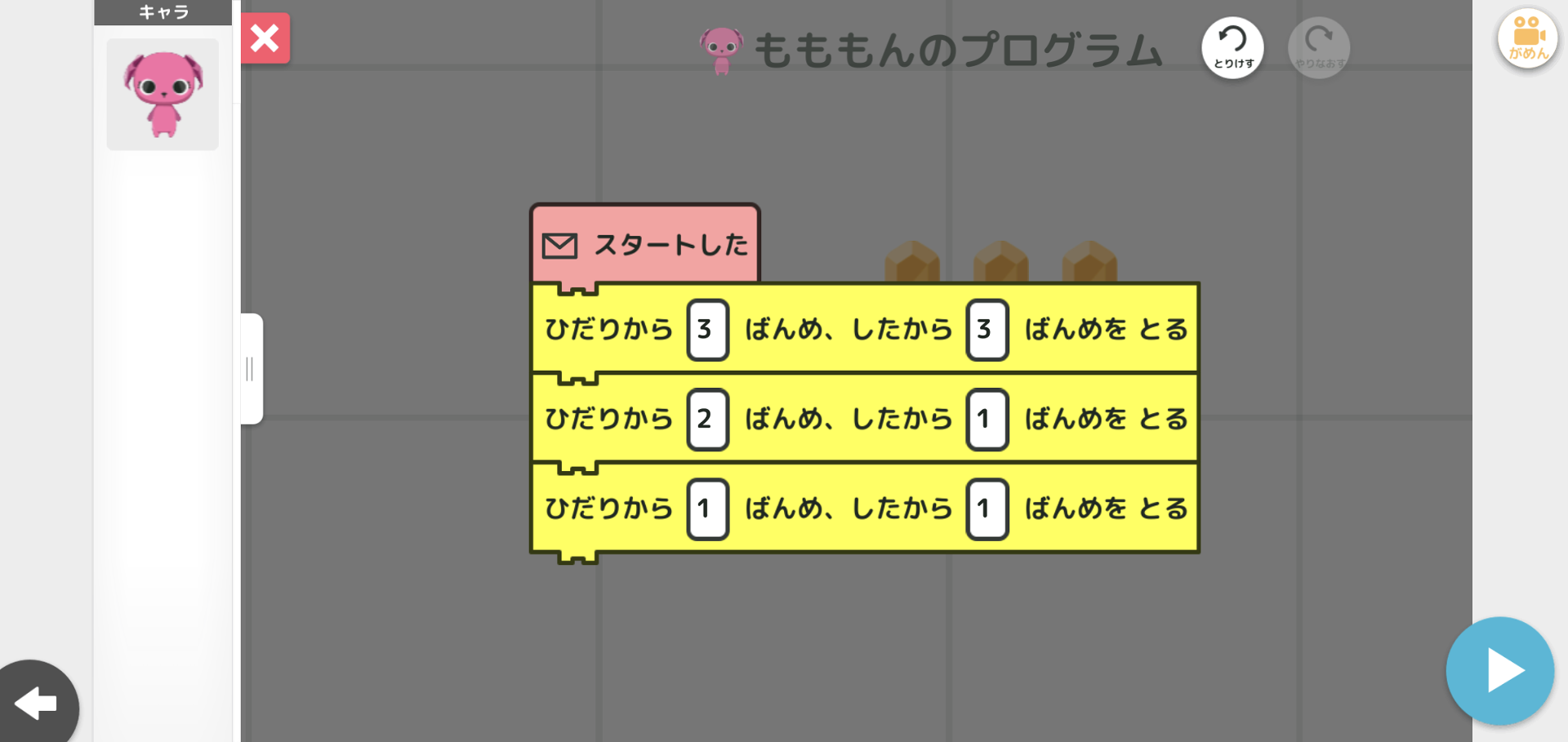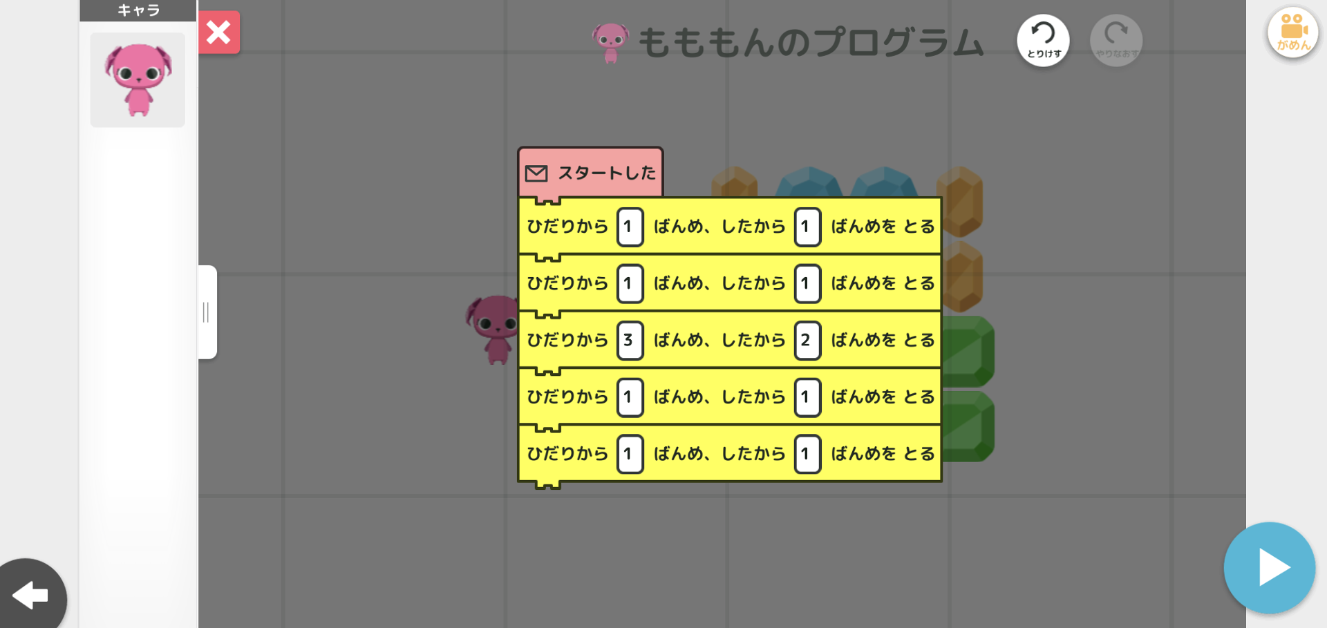 ヒントもないしとにかく解くのが難しいだけでプログラム的には同じ専用ブロックばかり使うだけで"プログラミング"ゼミのパズルとしては正直微妙