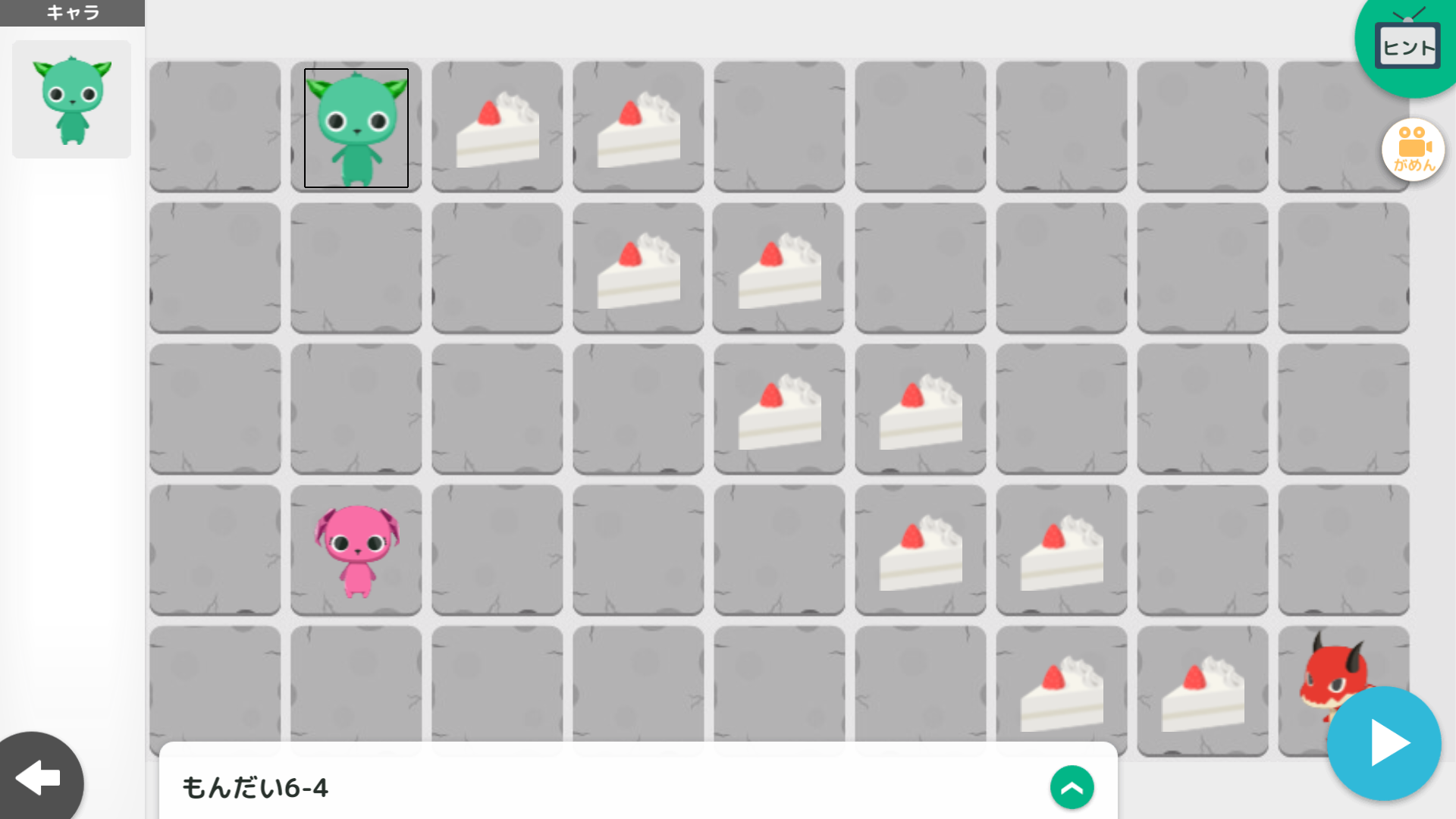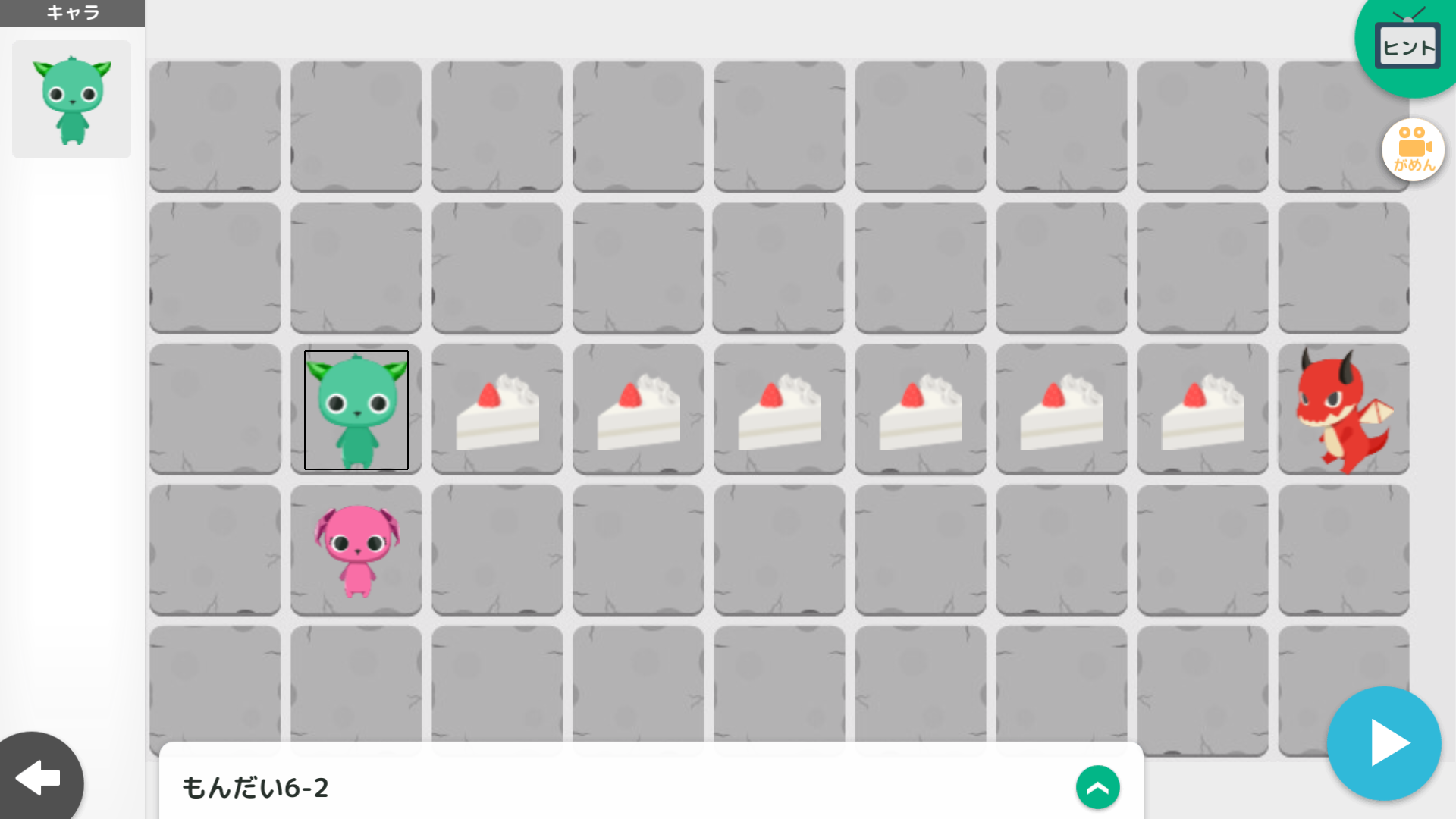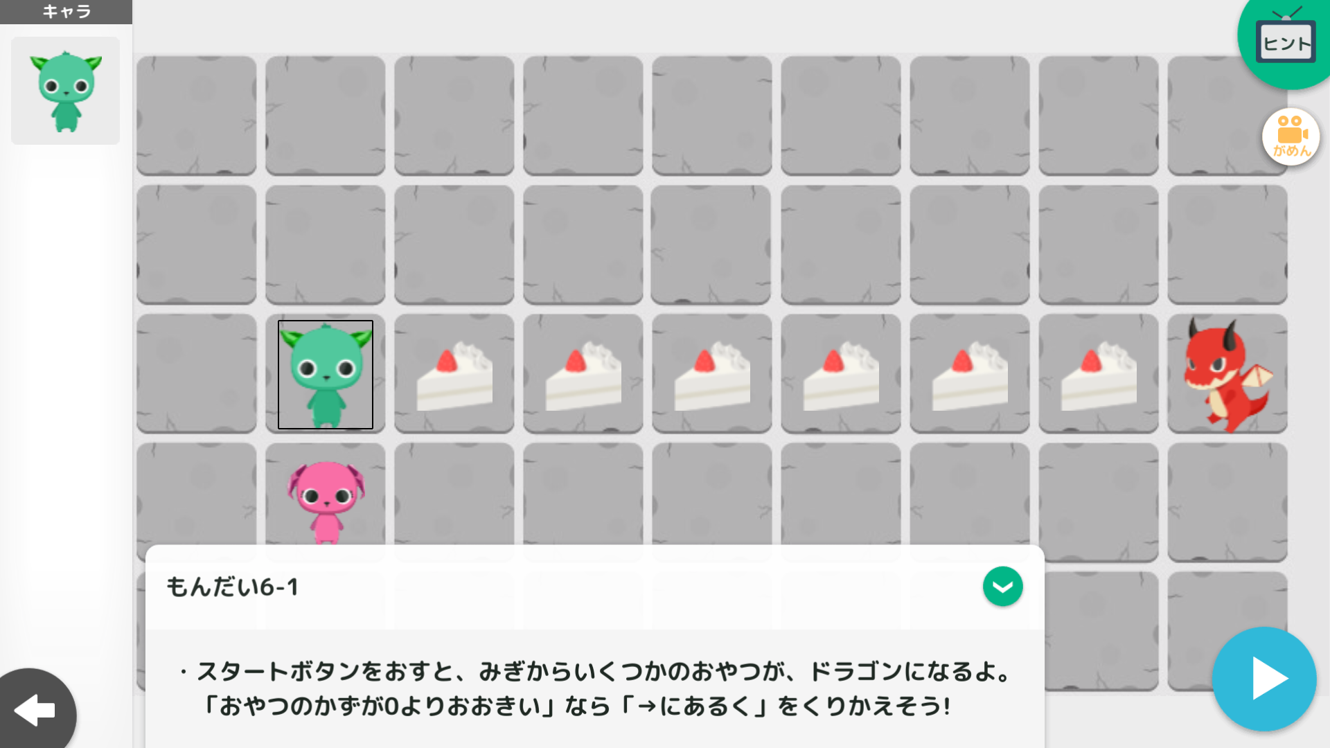 このレベルのは、じょうけん付きのくりかえしを使って ドラゴンがいるマスまで チキンレースすることが求められます。