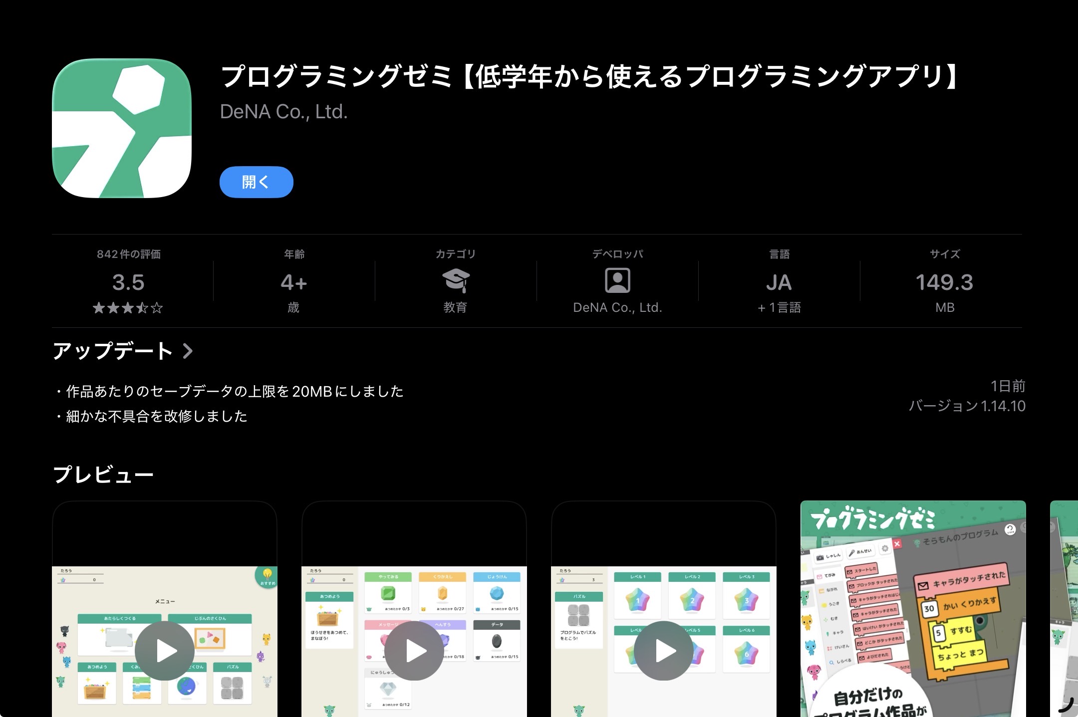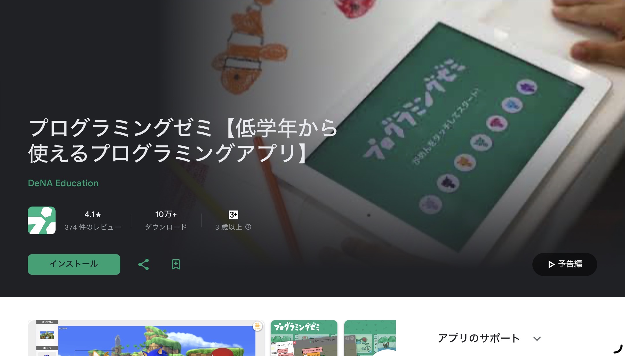 | iOS版インストール済みの画面。 | play storeの画面。(Web) |