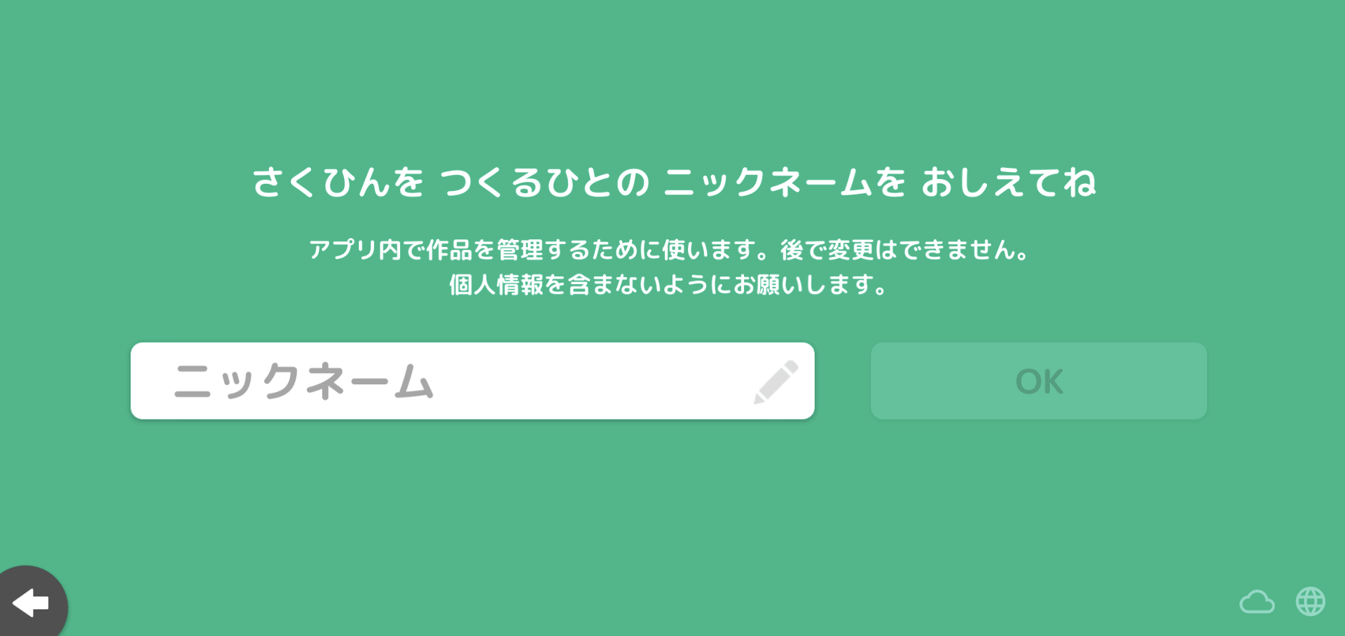 ニックネームを本名やすでにいるユーザーのなりすましにすると、さくひんを投稿した時に名前がニックネーム?になり、他の人からその人のさくひんを見つけることができなくなります。