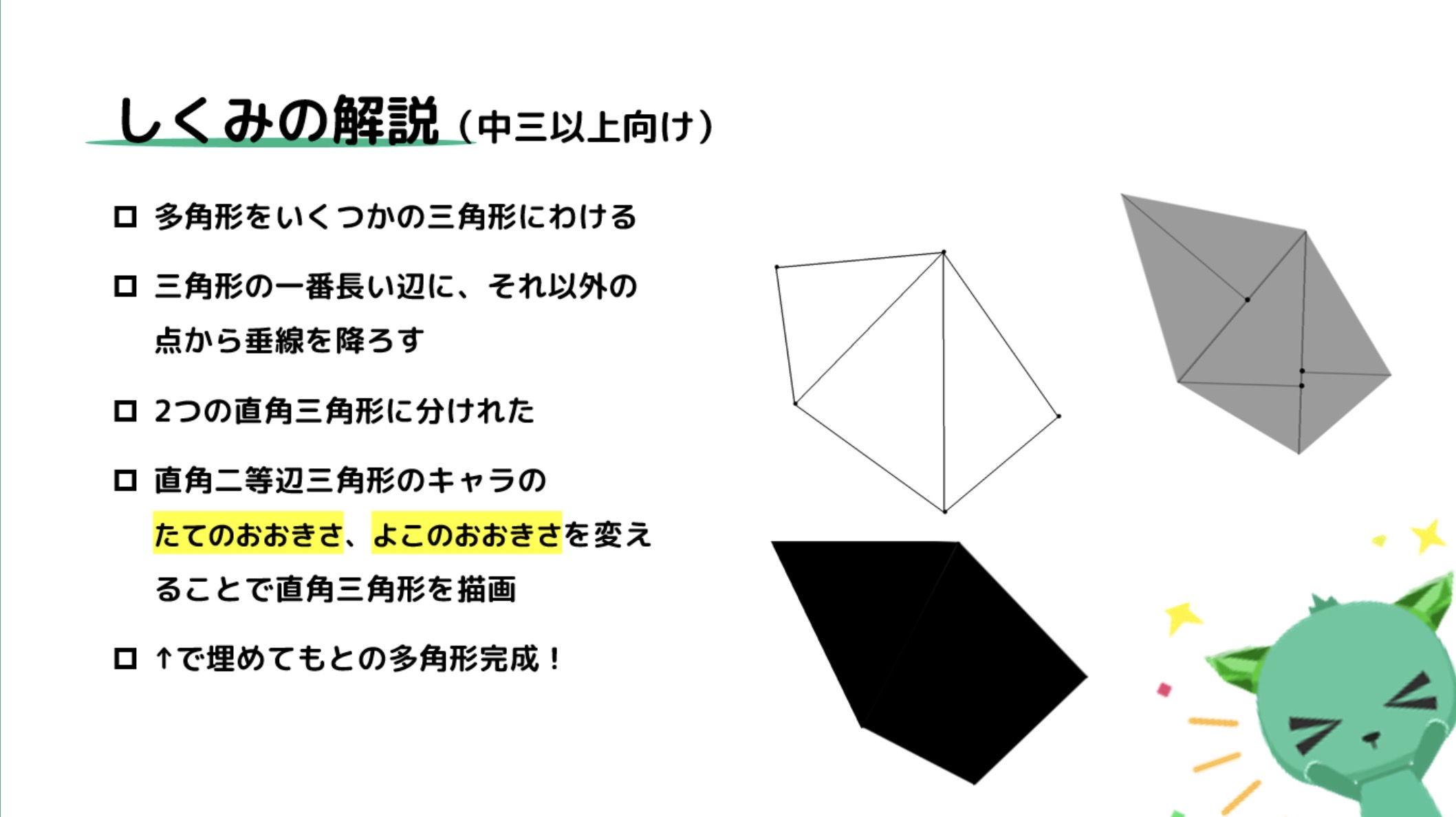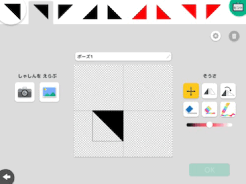| 変形スプライト方式 | ・ペン式より軽い ・三角形にテクスチャを貼り付ければ擬似的なテクスチャが描画可能 | ・参考になる動画がほぼ無い ・ペン式より難しい。 |