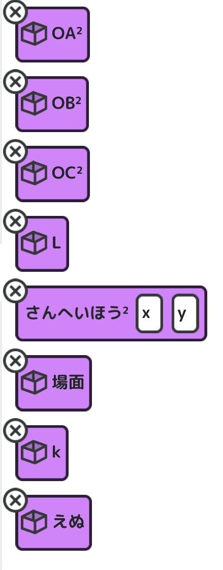 まずは3つの辺a,b,cの長さを求めたいので、それぞれの変数をこの式を使って求めます。