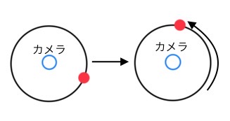 カメラの回転軸は、水平方向(h)、垂直方向(v)の2つあります。